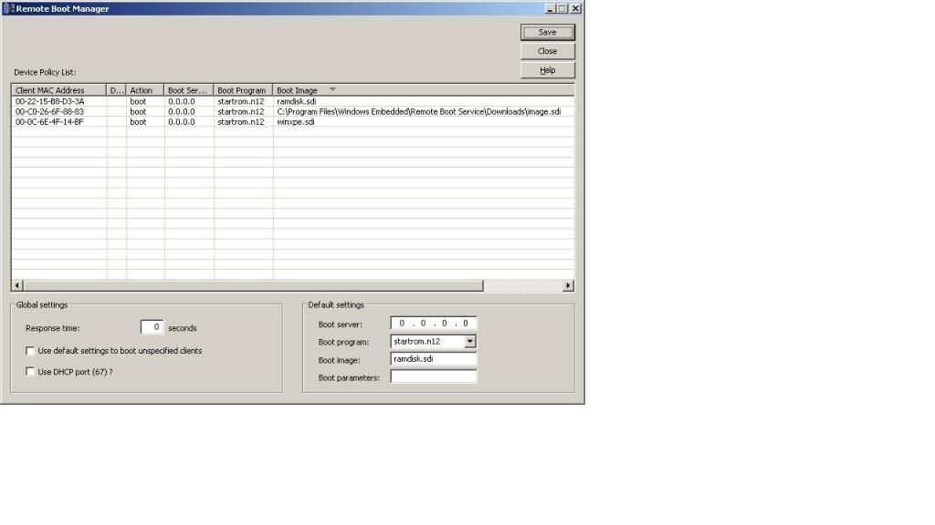 Boot Image: ramdisk.sdi. Remember that the image should be placed inside “C:\Program Files\Windows Embedded\Remote Boot Service\Downloads”.