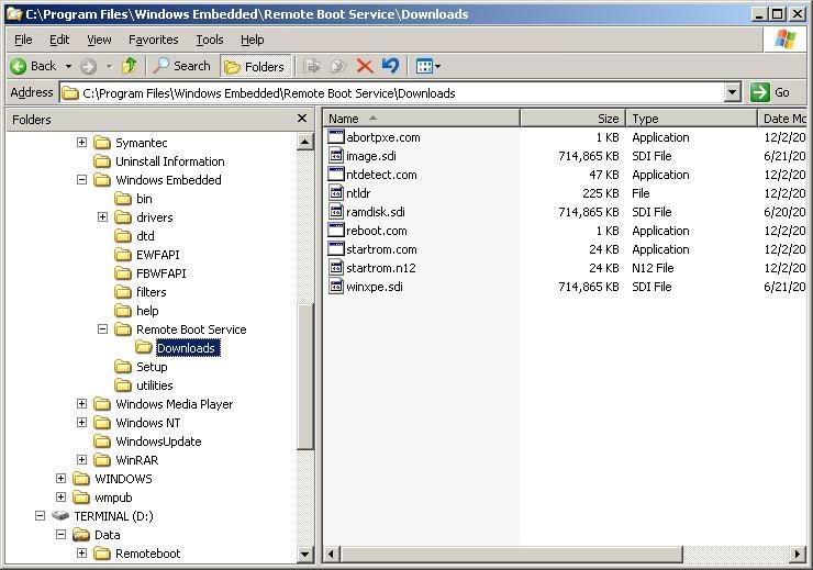 4.1 Place the “ramdisk.sdi” file configured earlier inside this folder “C:\Program Files\Windows Embedded\Remote Boot Service\Downloads”.