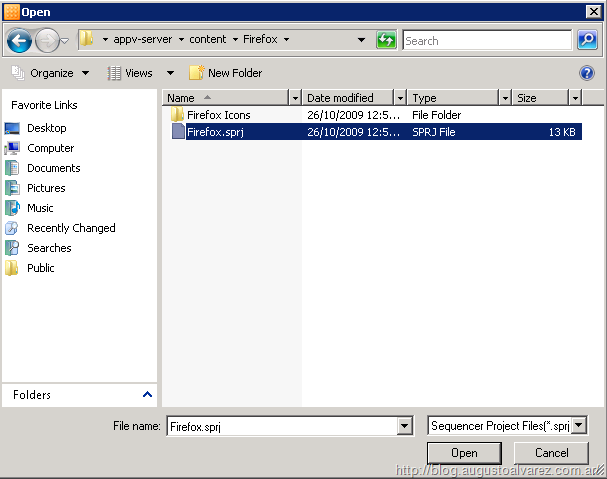 3. Select the SPRJ file for the Mozilla Firefox and click “Open”.