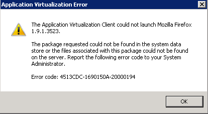 The Application Virtualization Client could not launch Firefox 11.0.0.4454.