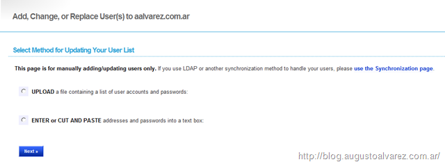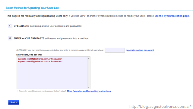 In my case, I’m going to add them manually. Using the format “<username>@aalvarez.com.ar|<password>”