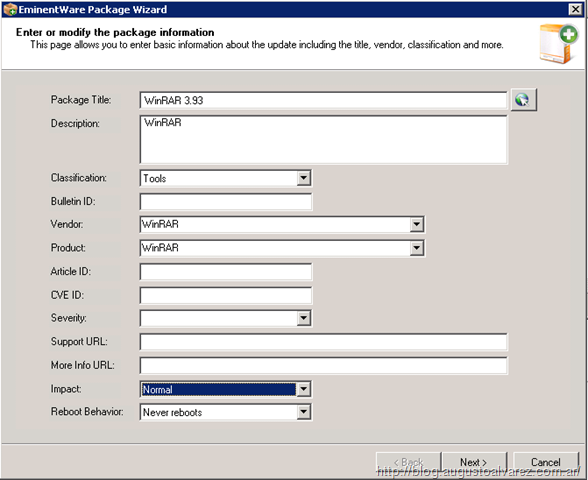 1. I’m going to create a package for WinRAR application, selecting “New Package”, the wizard will appear requesting information about the application.