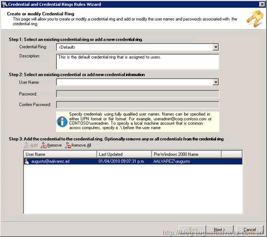 An important note is that you can select multiple type of users and define which one applies for what: Different domain users and even local users for special cases, like a workgroup (for local users use the format “.\Administrator”).
