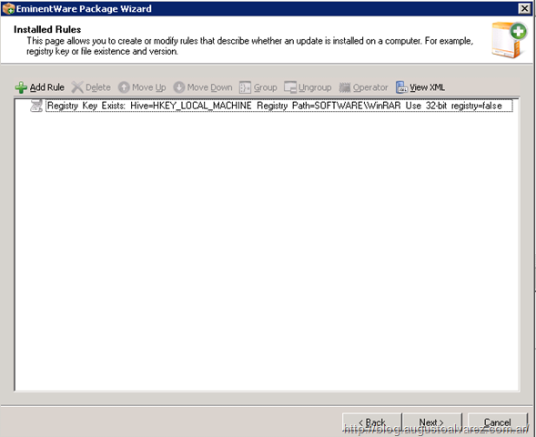 4. Applicability Rules. Are similar than the pre-requisites, you can add some more granular options for targeted machines, like applying the package just if a registry key exists. In my case, none in particular.
