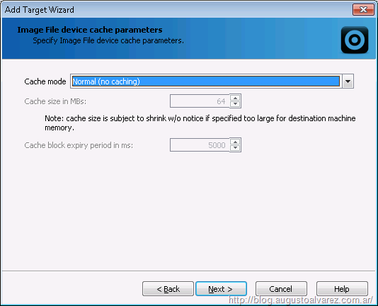 3.10 In the cache parameters, leave the default options selected “Normal (no caching)”; click on “Next”.