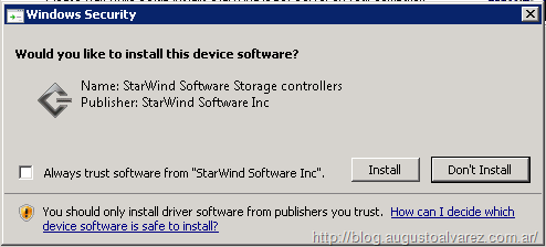 The next steps are pretty straight forward so you won’t have any problem. Once the final steps are completed you’ll get a warning about the iSCSI Service needed before installing the StarWind iSCSI Service.