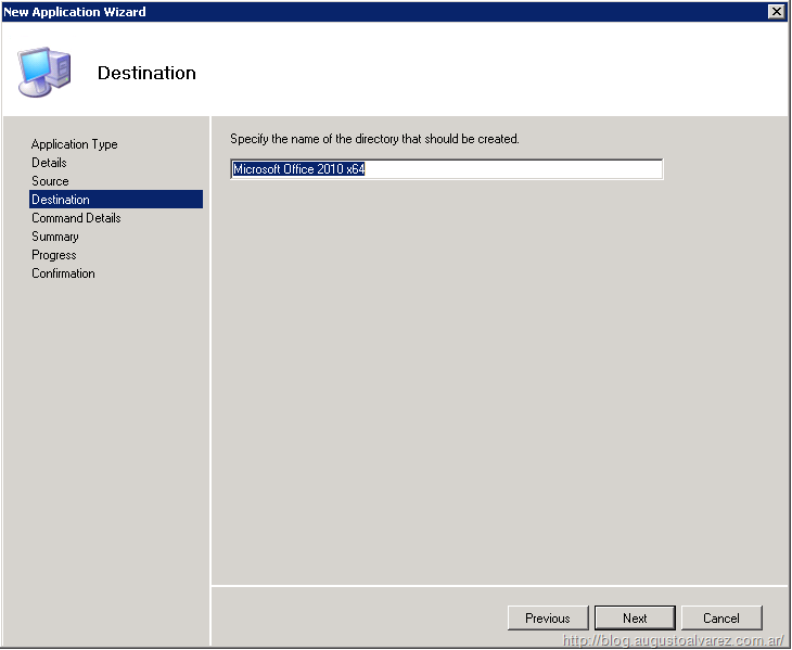 5. Specify the directory name to be stored, in my case “Microsoft Office 2010 x64”. Click on “Next”.