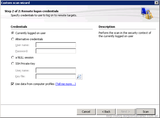 3. A short two step wizard will show where you can select the scope of the scan: local computer, specific computer or the entire domain.