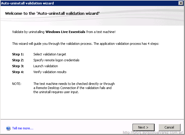 5. A new wizard will pop up to confirm the uninstall procedure. This process WILL NOT uninstall the application in the remote machine, will only validate the process.