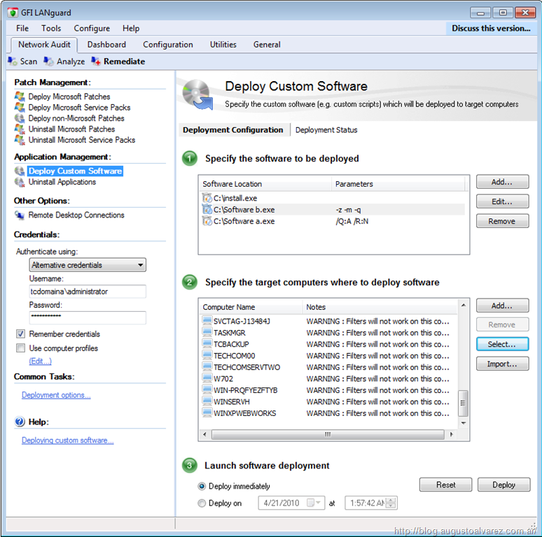 GFI LANGuard gives us the chance to use automated deployment process to install applications in our target machines: