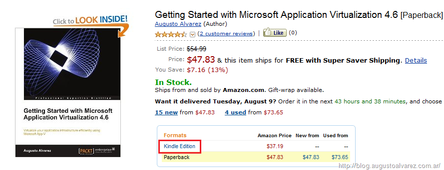 Not so much for a recent, but still I think represents as great news: The App-V book, “Getting Started with Microsoft Application Virtualization 4.6” is available in Kindle version, in Amazon site of course.