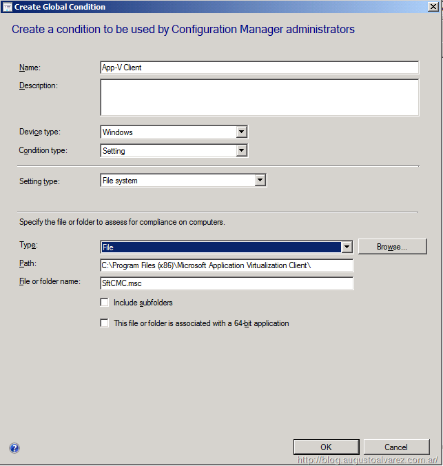 Here’s an example of creating a “Global Condition” (selecting a “Custom” requirement) to be included as a requirement in application deployment: Here, we will be using to be assessed by the client prior the deployment, if the file exists, the deployment continues.